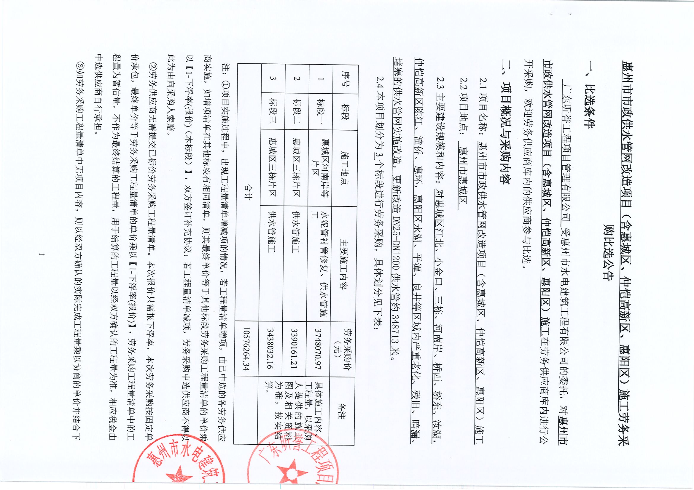 惠州市市政供水管網改造項目(含惠城區、仲愷高新區、惠陽區)施工勞務采購比選公告