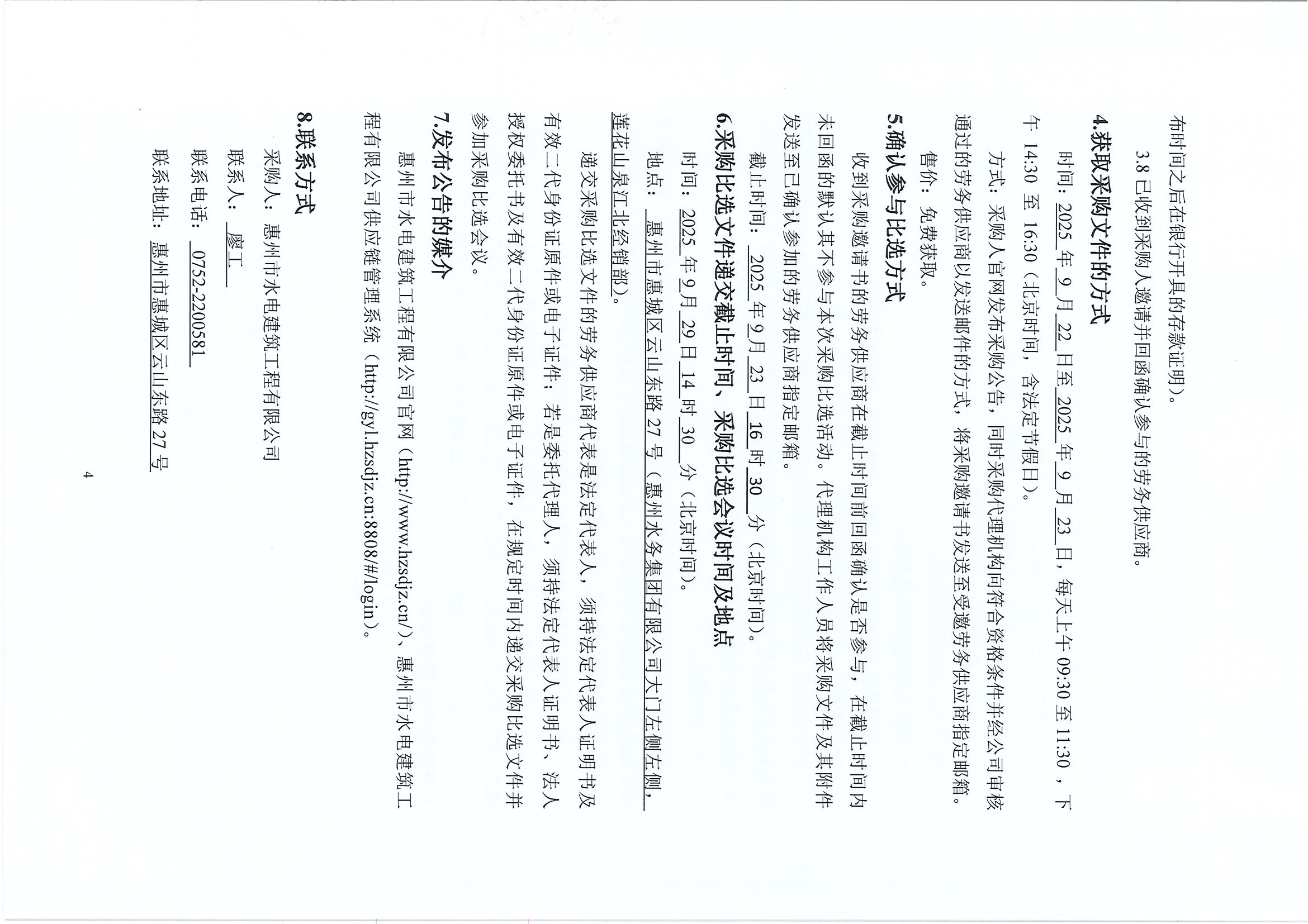 惠州市市政供水管網改造項目(含惠城區、仲愷高新區、惠陽區)施工勞務采購中選候選人公示